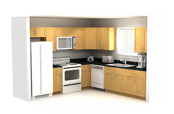 All wood cabinets frame less style with 3/4" plywood boxes, overlay doors, soft closing adjustable hinges, full extension and soft closing under mounted sliders and matching door exterior and interior finish.